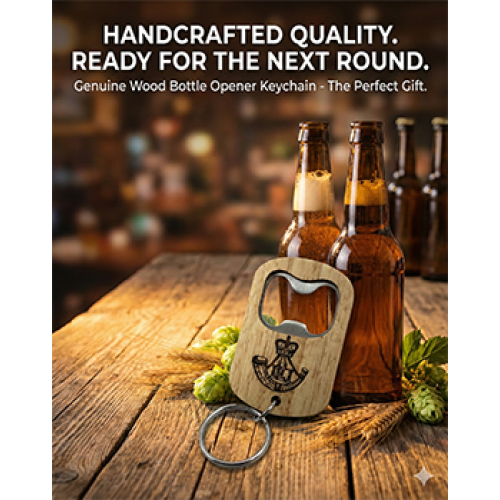 Carry a piece of regimental history in your pocket every day. This custom-crafted wooden bottle opener features the iconic Durham Light Infantry crest—the stringed bugle horn surmounted by the Crown—laser-engraved with precision.